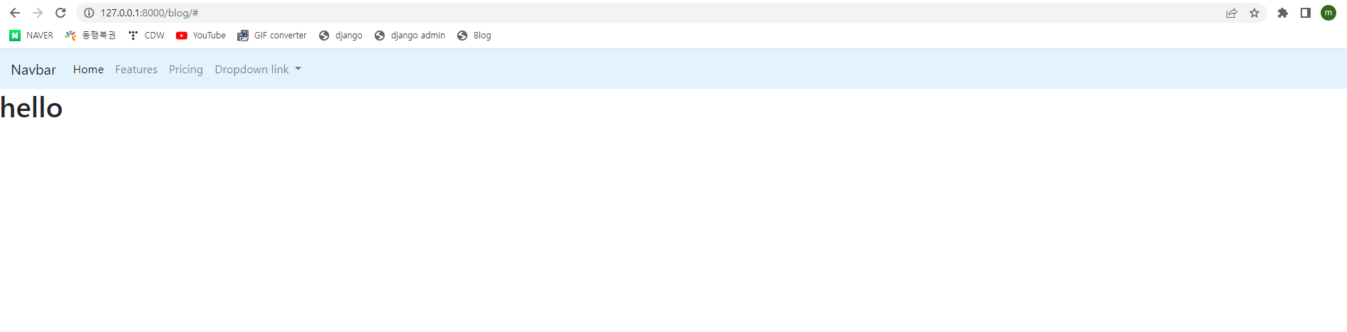 그리고 django를 실행시킨후 http://127.0.0.1:8000/blog/에 접속해본다. 어떻게 출력될까?
