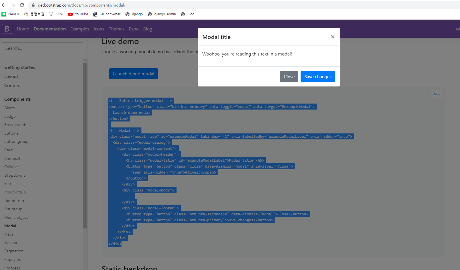 python(django) - 장고로 웹페이지 만들기, bootstrap modal (4) 본문